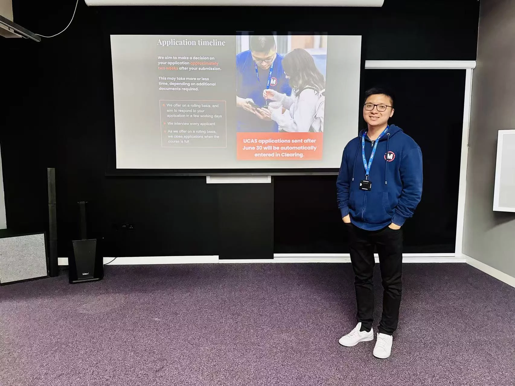 亚瑟老师在英国生活超过10年,2025年曾担任英国BIMM艺术大学的中国区招生副主任,2021-2024年为英国梅特电影学院面试官及招生官。2020年研究生毕业于英国皇家中央演讲与戏剧学院,为专业里18人的唯一的’亚洲人‘被录取, 同年也获得UCL的研究生录取。